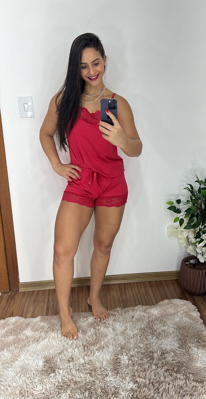 Camisete Confeccionado em microfibra romantique lisa possui uma modelagem moderna com Recorte de renda na parte frontal, alças fixas e reguláveis ajustando perfeitamente aos ombros e seios.